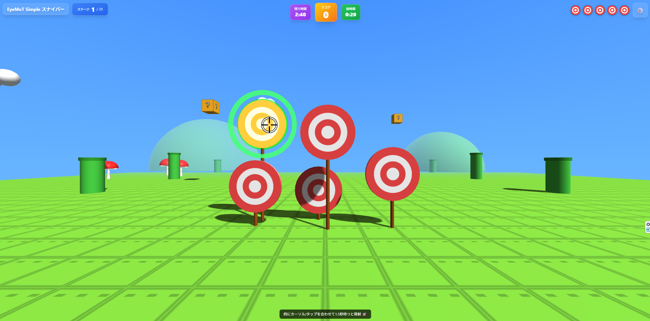 玉を捕まえてください! 視線入力のアセスメントとして、玉を追いかけるゲームとして遊べます。