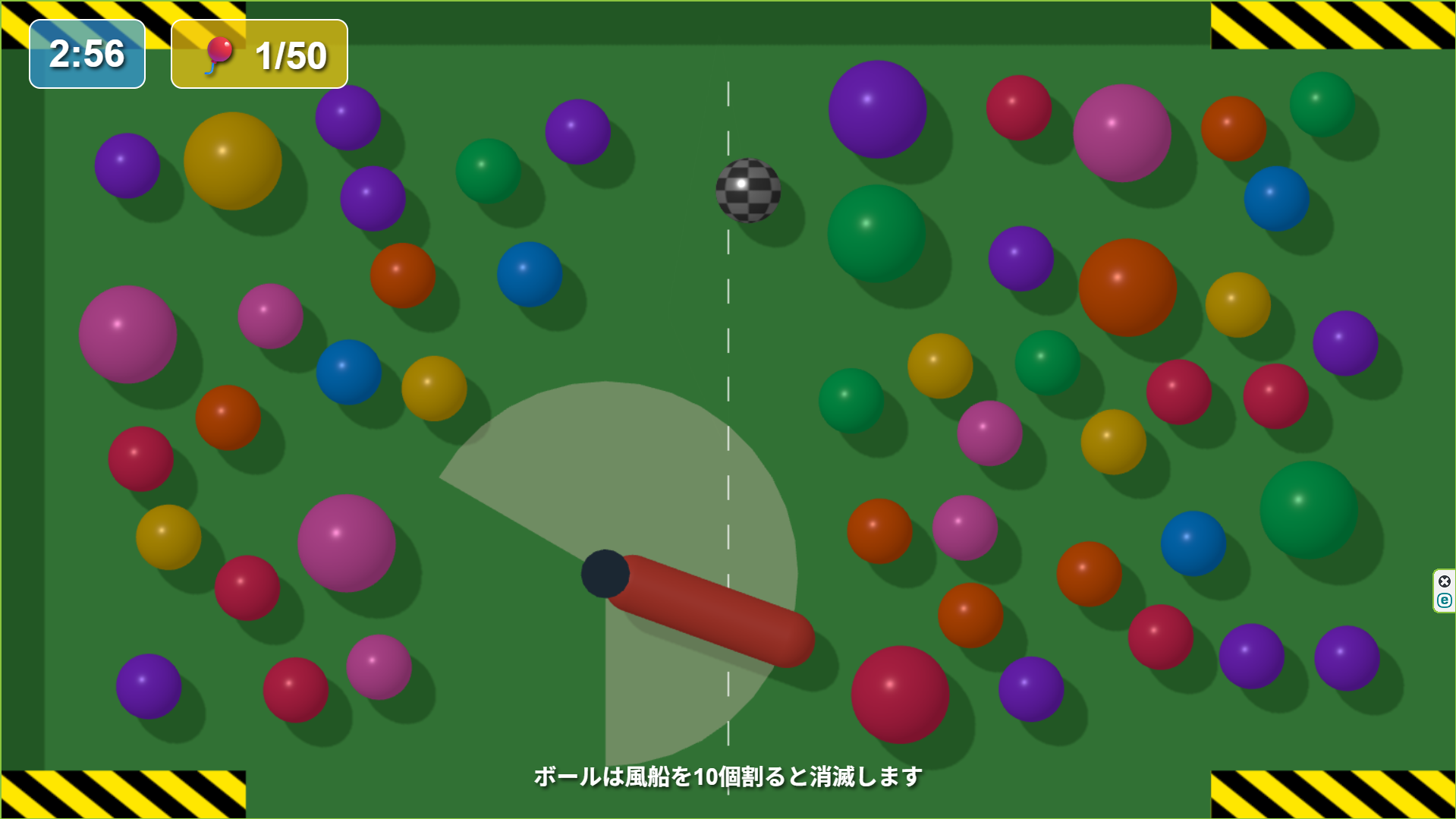 ボールをバットで打って、風船をすべて割ってください。