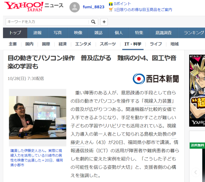 たいへんミーハーですが,ヤフーニュースに掲載されていてうれしくなってしまいました。