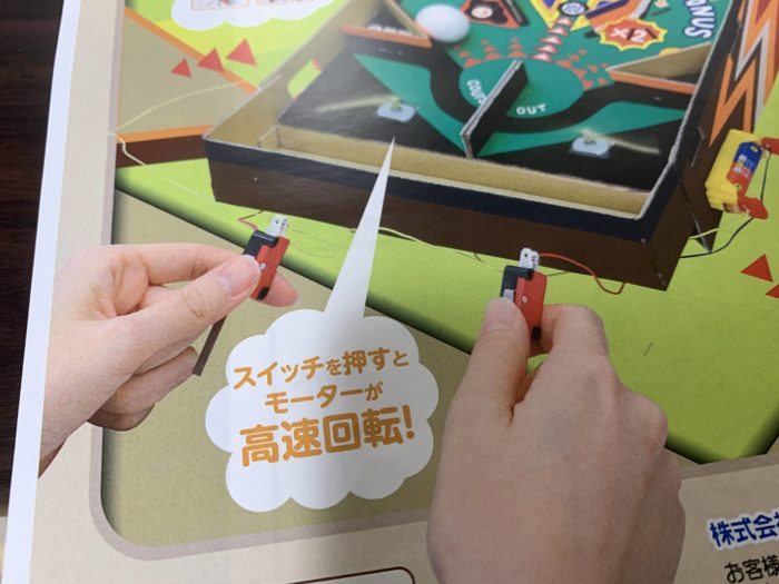 【休日の自由研究】スイッチでおもちゃを動かす(2/5) 2020年8月31日 最終更新日時 : 2020年8月31日 Fumihito ITO FacebookXBlueskyCopyViews: 295 2つ目はこれ。ピンボールです。自作してみようかと思っていたところ,クラフト版ではありますが,スイッチを使ったものがありました。 バッチリ! これです。 ピンボールといえば左右の羽根のバタバタですが,これは羽根が猛回転! ま,まあいいか。 でもやっぱりバタバタがいいなあ。 FacebookXBlueskyCopy