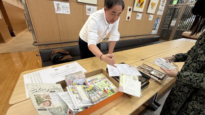全国から受講生が来ますので、全国のEyeMoTユーザーさんの有志数名が視線アートのグッズを送ってくれました。販売するためです。