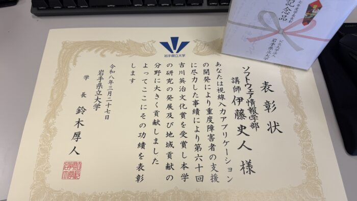 【感謝】学長表彰2025を頂戴しました