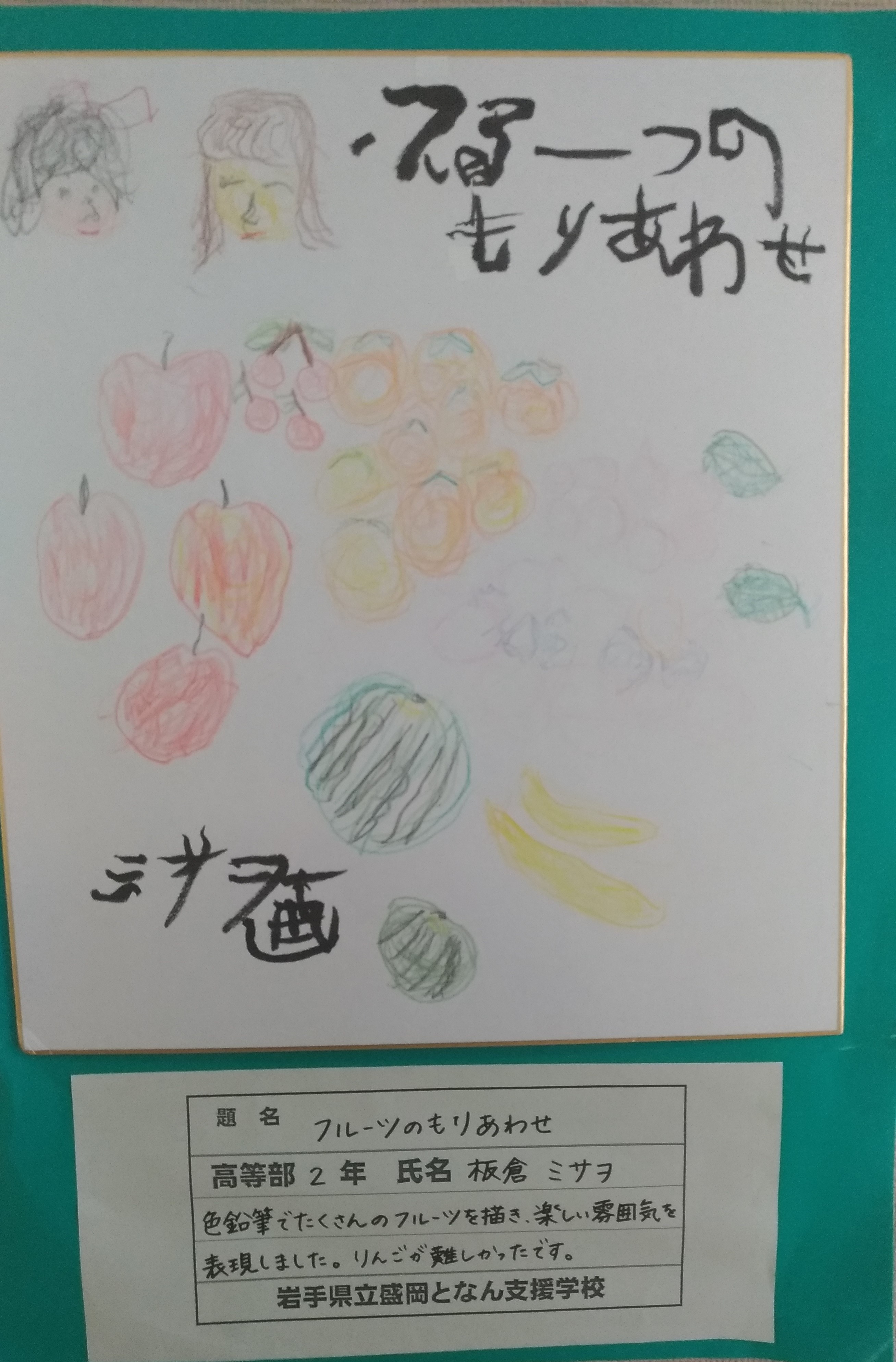 学校に行くようになってから,こんな絵も書くようになりました。施設内でもさまざまな活動をしてきましたが,生徒になってからはその幅が広がりましたね。口の器用さは驚異的で,口の中で固結びもできますし,割り箸をくわえて細かいジグソーパズルもこなします。極めつけは,「編み物」。なんと,特技は編み物なのです。私もこれまでいくつかのマフラーなどをもらいました。施設の友人のハナさんにもレクチャーするほどの腕前。