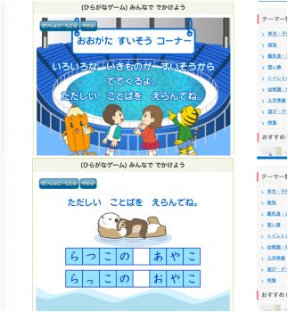 学習ゲームは,ベネッセをはじめとして,たくさんの優秀なものが公開されています。最近はスマホ/タブレット専用アプリが流行っていますが,操作性においてはパソコンに一日の長がありますし,支援者もパソコンであれば操作に慣れているでしょう。